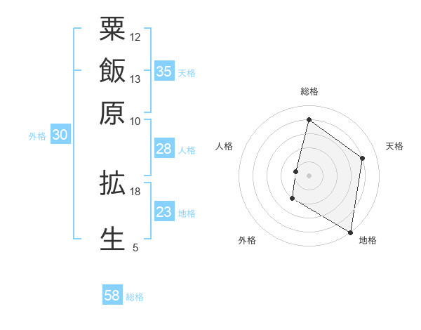 粟飯原 拡生さんの総格は58画の4点!