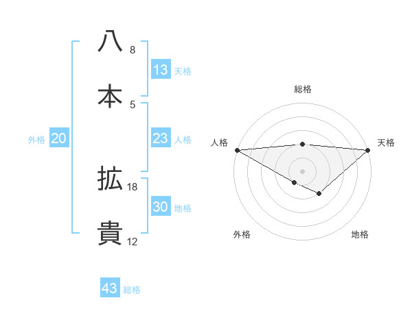 八本 拡貴さんの天格は13画の5点!