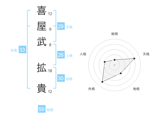 喜屋武 拡貴さんを姓名の画数から五運を鑑定