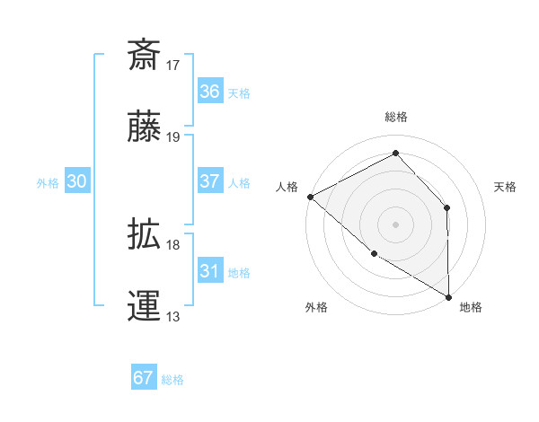 斎藤 拡運さんを姓名の画数から五運を鑑定