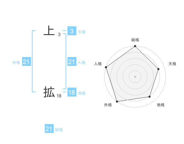 上 拡さんの総格は21画の5点!