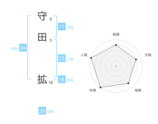 守田 拡さんの総格は29画の4点!