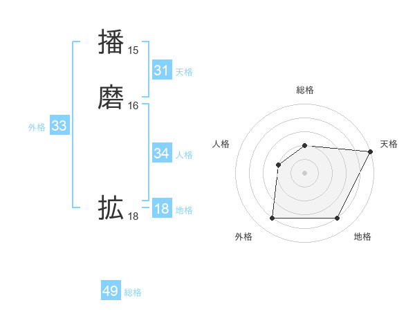 播磨 拡さんの総格は49画の2点!