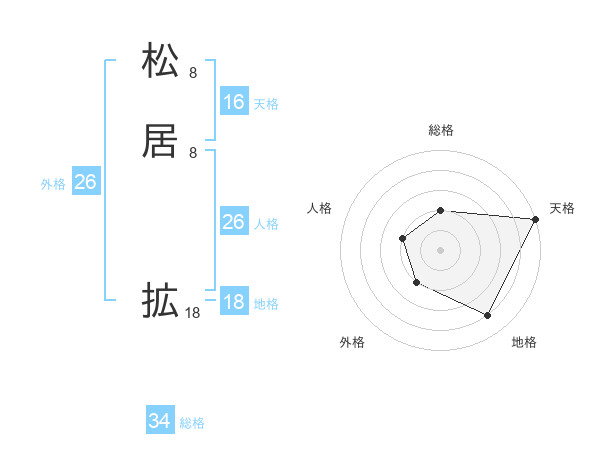 松居 拡さんの総格は34画の2点!