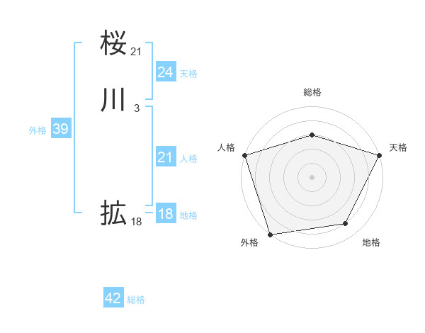 桜川 拡さんの総格は42画の3点!
