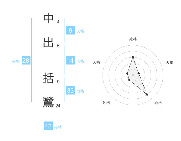 中出 括鷺さんを姓名の画数から五運を鑑定