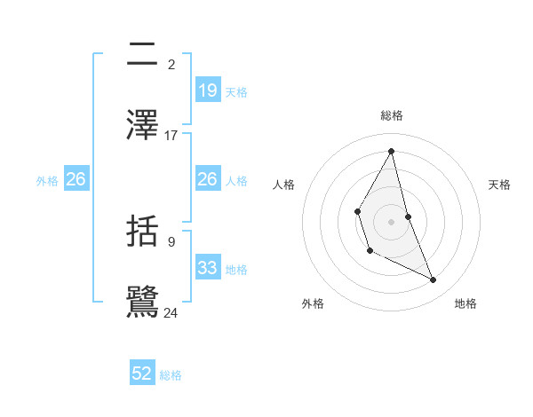 二澤 括鷺さんを姓名の画数から五運を鑑定