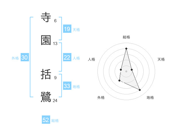 寺園 括鷺さんの総格は52画の4点!