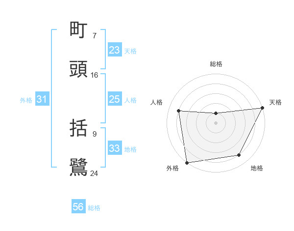 町頭 括鷺さんを姓名の画数から五運を鑑定
