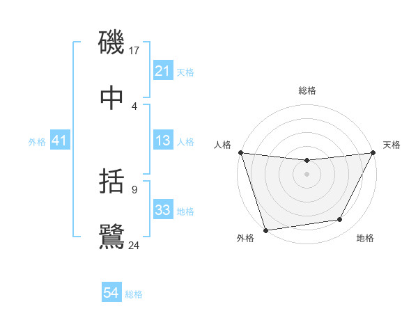 磯中 括鷺さんの天格は21画の5点!