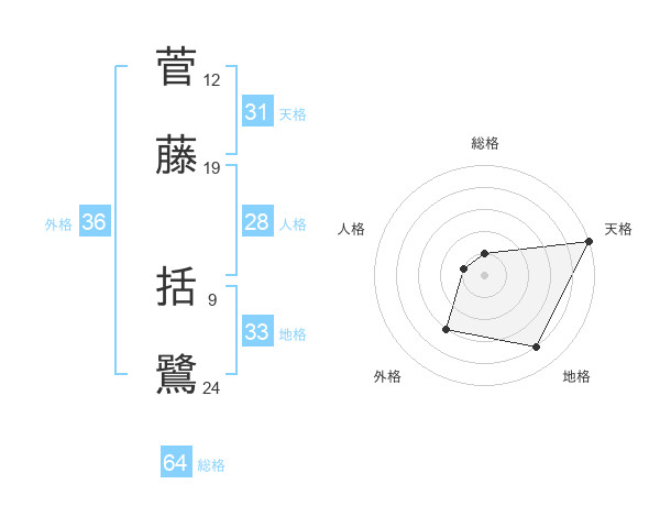 菅藤 括鷺さんを姓名の画数から五運を鑑定