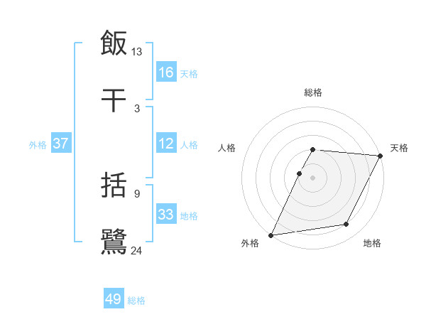 飯干 括鷺さんを姓名の画数から五運を鑑定