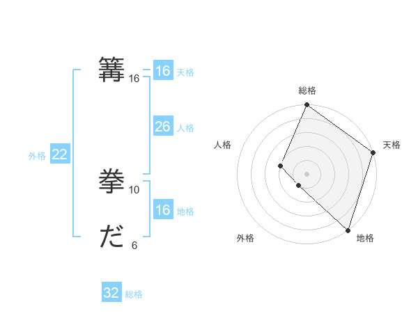 篝 拳ださんの天格は16画の5点!