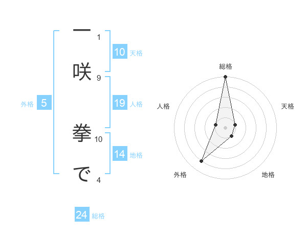 一咲 拳でさんを姓名の画数から五運を鑑定