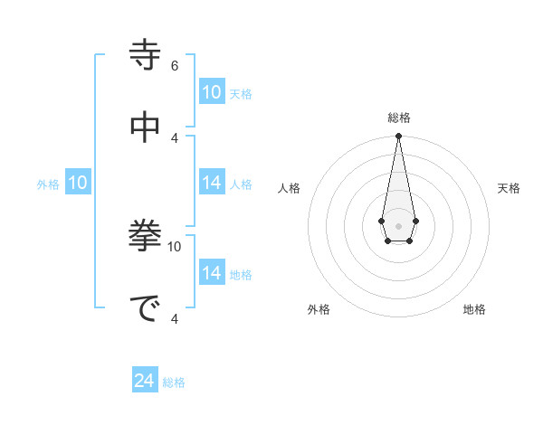 寺中 拳でさんの総格は24画の5点!