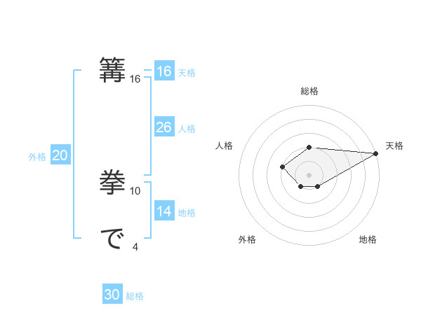 篝 拳でさんの天格は16画の5点!