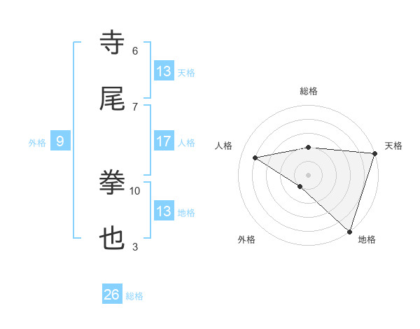 寺尾 拳也さんを姓名の画数から五運を鑑定