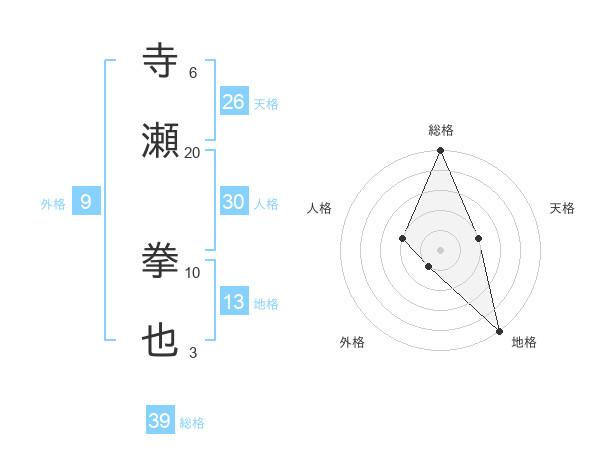 寺瀬 拳也さんを姓名の画数から五運を鑑定