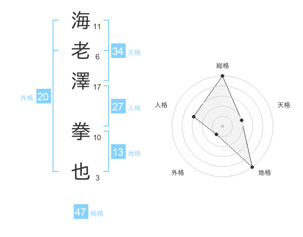 海老澤 拳也さんを姓名の画数から五運を鑑定