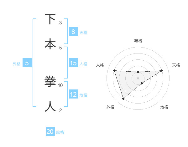 下本 拳人さんの総格は20画の1点!