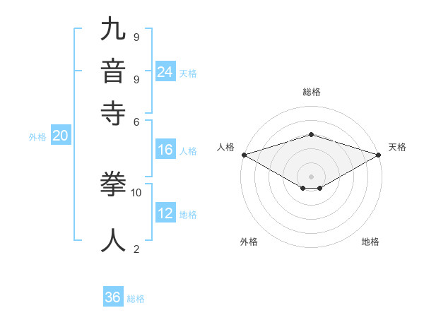 九音寺 拳人さんの天格は24画の5点!