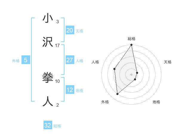 小沢 拳人さんの総格は32画の5点!