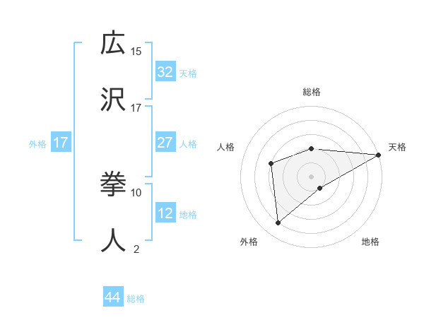 広沢 拳人さんを姓名の画数から五運を鑑定