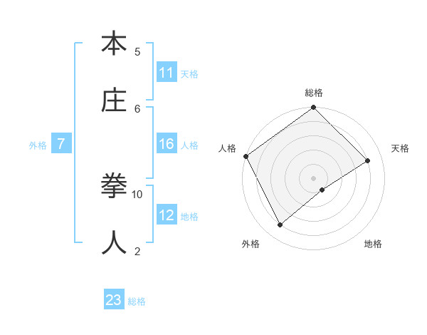 本庄 拳人さんの総格は23画の5点!