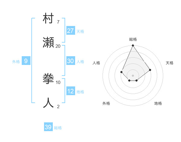 村瀬 拳人さんを姓名の画数から五運を鑑定