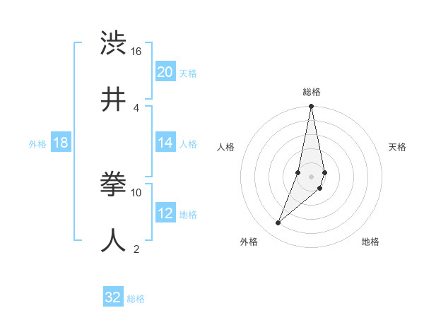 渋井 拳人さんの総格は32画の5点!
