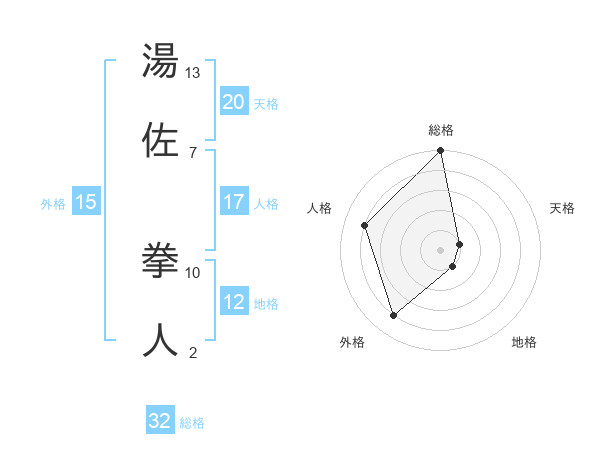 湯佐 拳人さんを姓名の画数から五運を鑑定