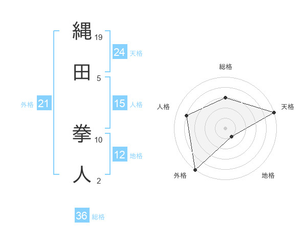 縄田 拳人さんを姓名の画数から五運を鑑定