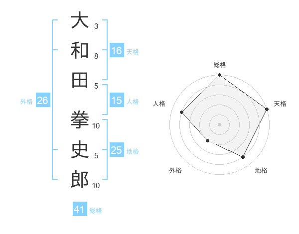 大和田 拳史郎さんを姓名の画数から五運を鑑定