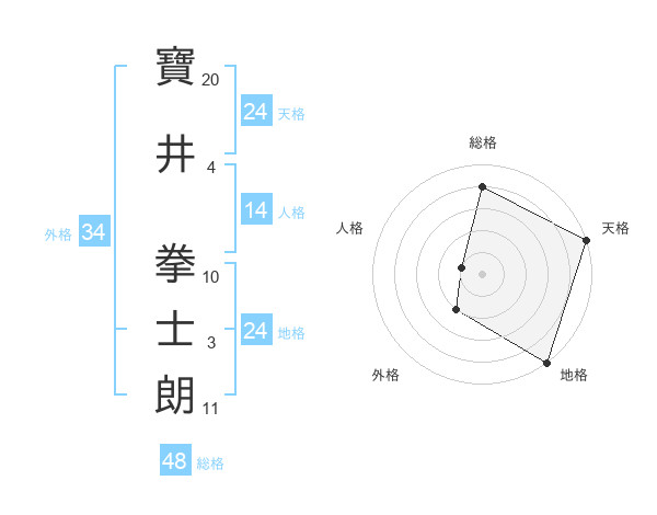 寶井 拳士朗さんの天格は24画の5点!