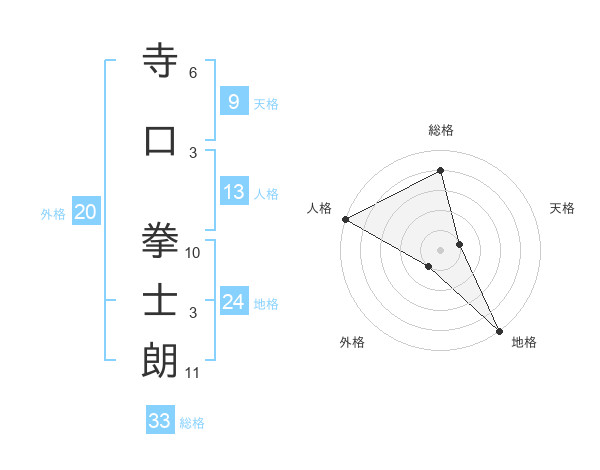 寺口 拳士朗さんの総格は33画の4点!