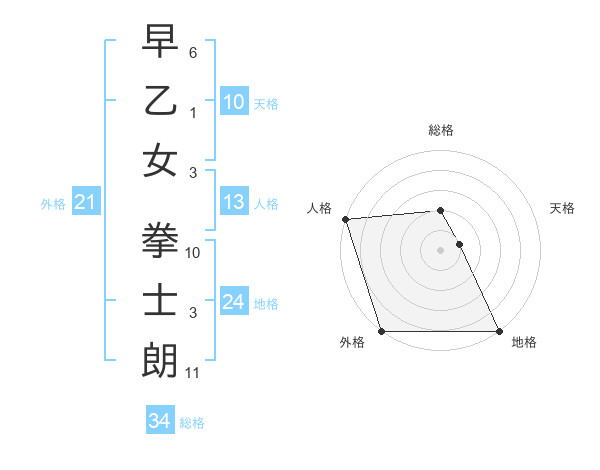 早乙女 拳士朗さんを姓名の画数から五運を鑑定