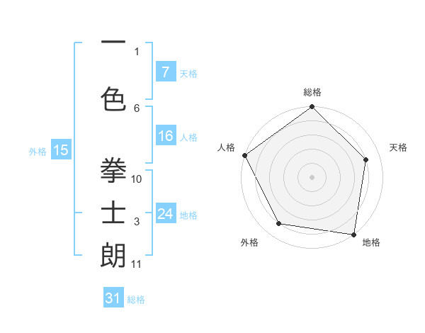 一色 拳士朗さんを姓名の画数から五運を鑑定