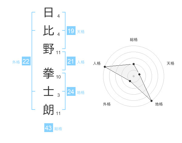 日比野 拳士朗さんを姓名の画数から五運を鑑定