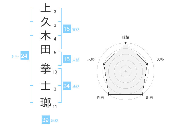 上久木田 拳士瑯さんを姓名の画数から五運を鑑定