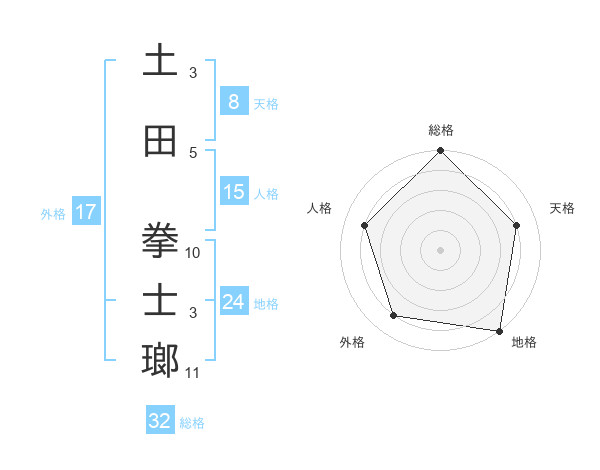 土田 拳士瑯さんを姓名の画数から五運を鑑定