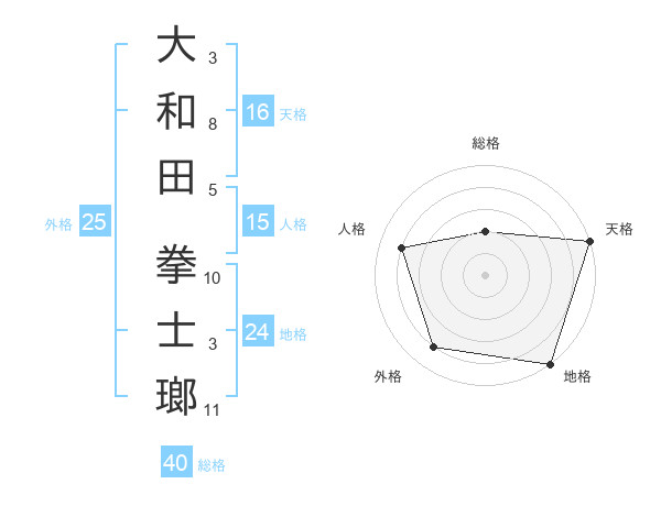 大和田 拳士瑯さんを姓名の画数から五運を鑑定