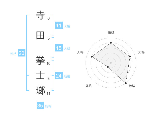 寺田 拳士瑯さんを姓名の画数から五運を鑑定