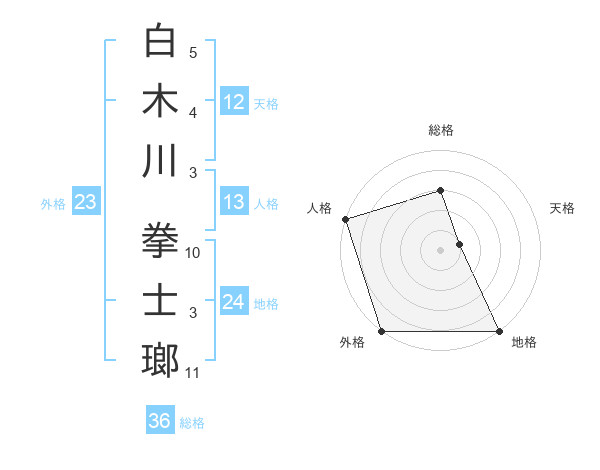 白木川 拳士瑯さんを姓名の画数から五運を鑑定