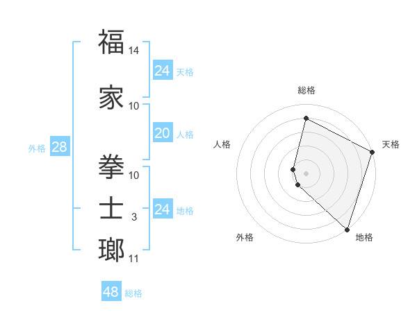 福家 拳士瑯さんを姓名の画数から五運を鑑定