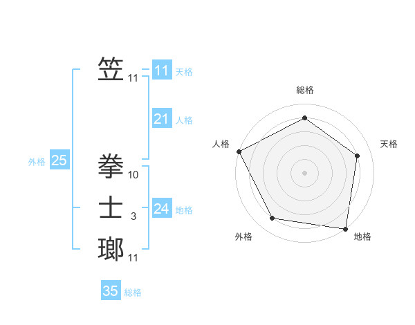 笠 拳士瑯さんを姓名の画数から五運を鑑定