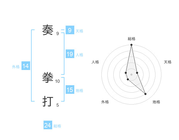 奏 拳打さんの総格は24画の5点!