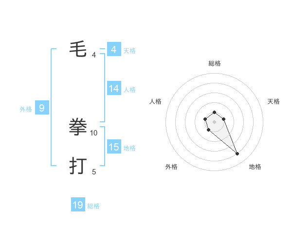 毛 拳打さんの地格は15画の4点!