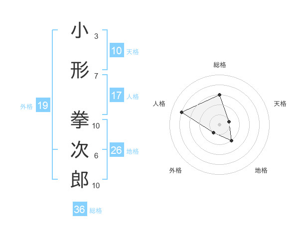 小形 拳次郎さんを姓名の画数から五運を鑑定
