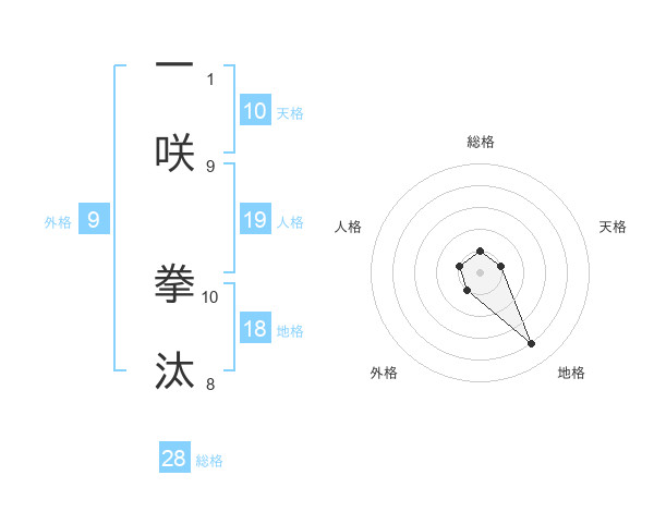 一咲 拳汰さんを姓名の画数から五運を鑑定