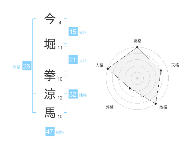 今堀 拳涼馬さんを姓名の画数から五運を鑑定
